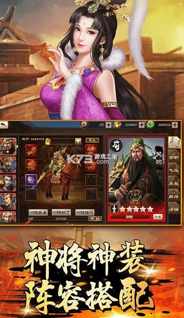 各位三国名将悉数登场,刘备、关羽、张飞、曹操、赵云、吕布、孙权等群英荟萃,各色神装、武器、皮肤提升战力,群雄兼并,多种技能齐放,助你奏响三国传奇史诗!
