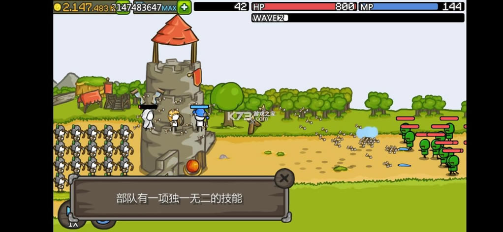 随着金币的增多,玩家们可以购买更多的英雄及武器。塔楼上的弓箭手也会不断升级,越来越强大的攻击力将保护城堡的平安。