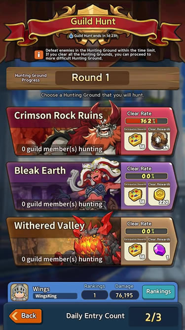 获得每日赠送的礼物和胜利奖励,看着您的公会成长。
