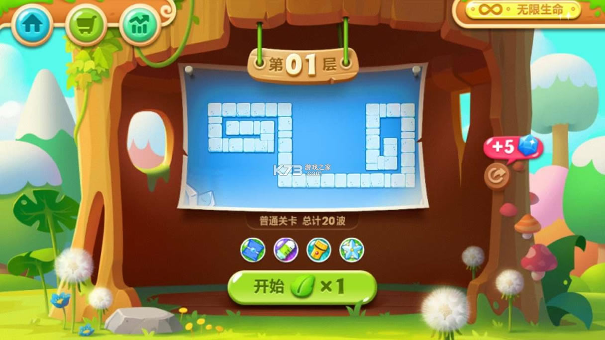 每个关卡还带有各种特色道具,如加血、冰冻、减速等魔法效果,就是为了让玩家在增加乐趣的同时,也让游戏玩法变得更为丰富