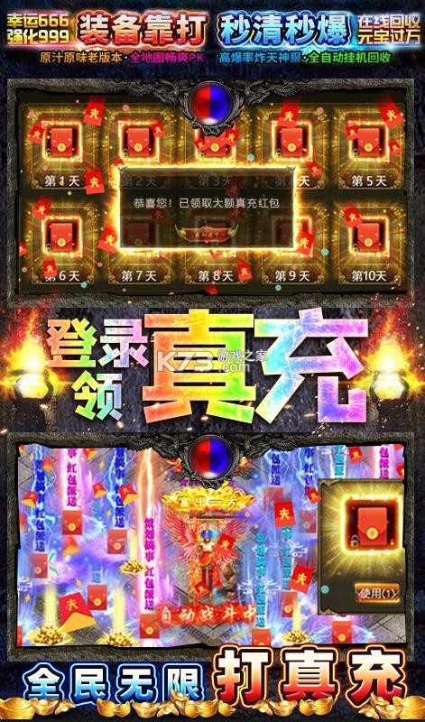 2.装备打金,爆装可以兑换元宝、绑元。首次击杀指定BOSS可以获得红包(激活SVIP经验,获得元宝,激活每日累充及连充豪礼)