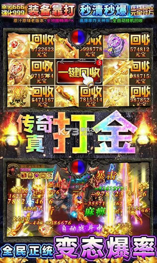 超高的游戏爆率对所有玩家开放,平民玩家也能够获得各种稀有神装,回收获得大量元宝