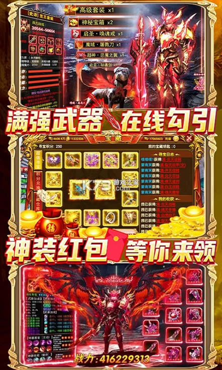 2.上线送满级VIP,1000w金!!还有100w绑定元宝!全民红包随便抢,每天只需15分钟,就能获得丰厚元宝红包!还等什么赶紧来抢呀(偷偷告诉你离线也能自动抢哦)!