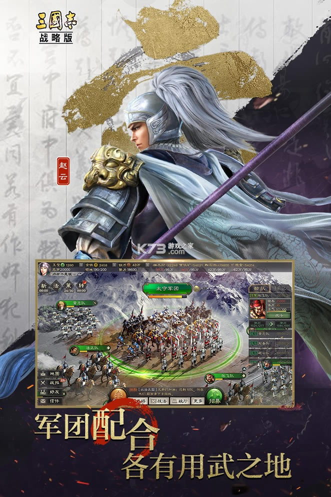 以独特的手法还原了每个三国名将的特色,此外配合多样的将领养成系统,武将升级、进阶、升星、天赋、神器,即使是无名将士经过精心培养,也能媲美吕布三英!