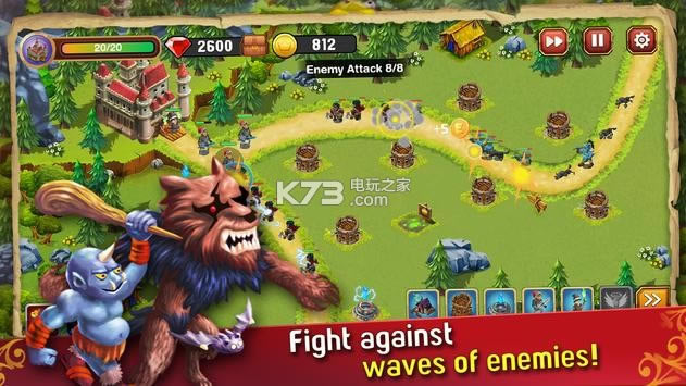 《城堡塔防战争起源》你作为魔幻大陆的城主之一,需要召集英雄和建造防御塔来保护城堡,城堡塔防战争起源游戏会有大量魔物试图攻占城堡,合理分配防御力量来消灭敌人,避免他们破坏城堡。