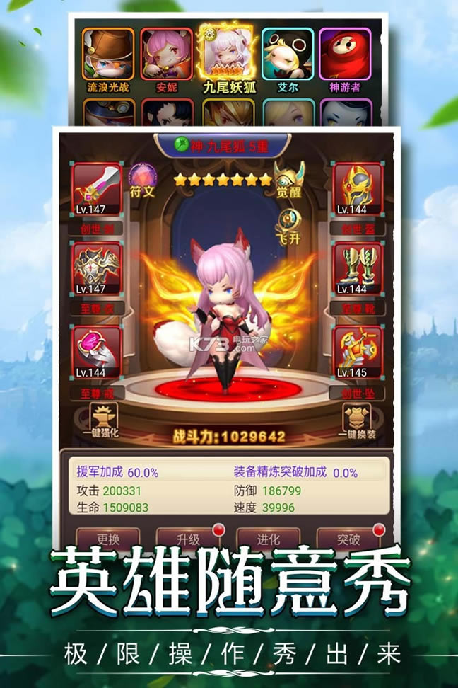 英雄进化、英雄突破、装备精炼、符文强化、飞升、觉醒等系统保证战力狂飙,爽到根本停不下来!