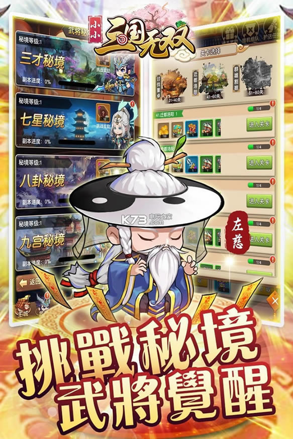 创新的三国放置手游,吸睛的Q版可爱画风,突破传统,化身呆萌三国, 一分钟简单上手,三分钟开始战斗!剩下的时间享受挂机快感,一样的情怀,不一样的体验,尽在《小小三国无双》 萌创来袭!