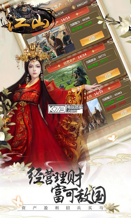《江山》是一款极为纯正好玩爽快有着迷人经典游戏内容的最新爽快模拟策略当官系列手游,《江山》会给玩家带来纯正原始的游戏快感,众多福利特权内容随意呈现与游玩,带来了绝佳真实的游戏触感与魅力。