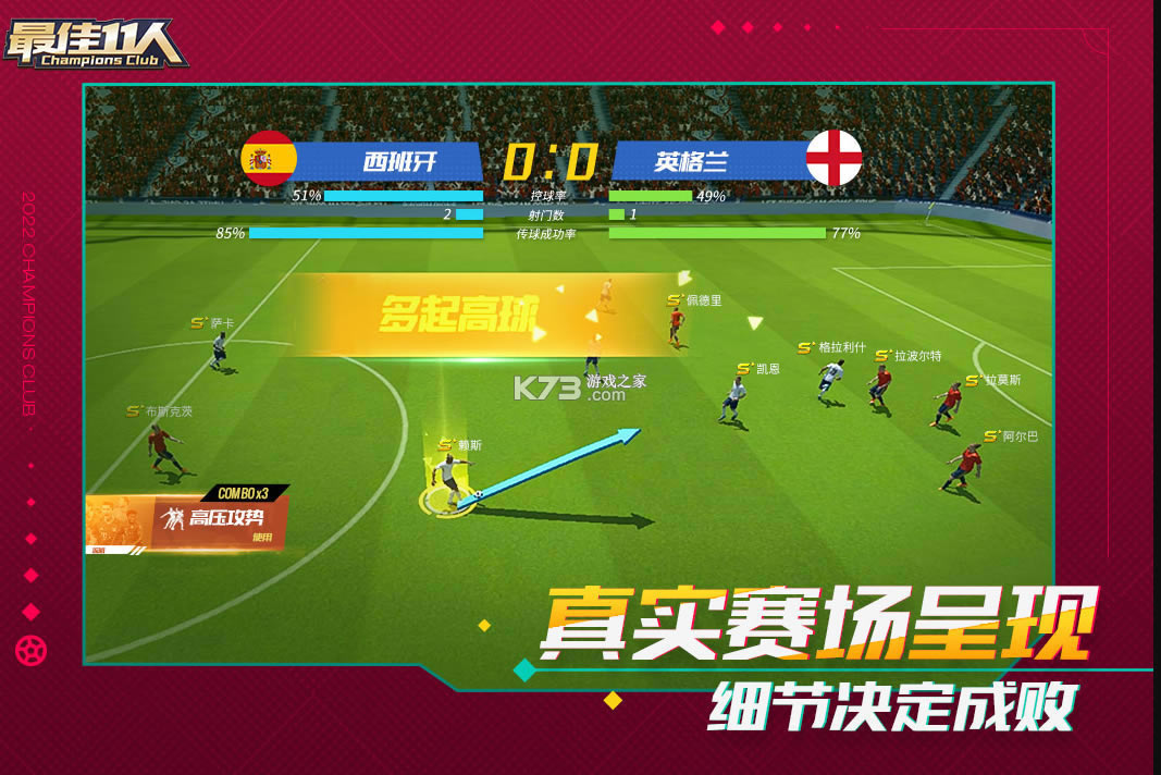 不止是游戏,更是足球社交联盟对战、好友切磋、全球玩家实时PVP!高清细腻的画面,逼真的动作模拟,让玩家感觉身临其境;