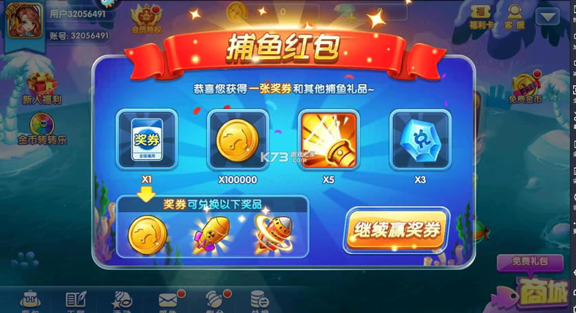 捕鱼红包话费券实物奖励