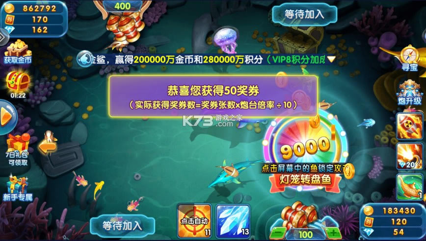 8、精彩不断,到处是惊喜,全网络独家特色的捕鱼体验,打金币爆开花