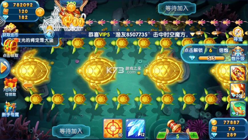 2、全生命钓鱼机玩法:1万人在线,多人在线,实现在线钓鱼,1万人线上竞技,经典还原钓鱼机,超级帝王蟹,金鲨银鲨,美人鱼等,鱼类数量多,大鱼机会大,且易命中,易命中,爆发率高,满屏黄金