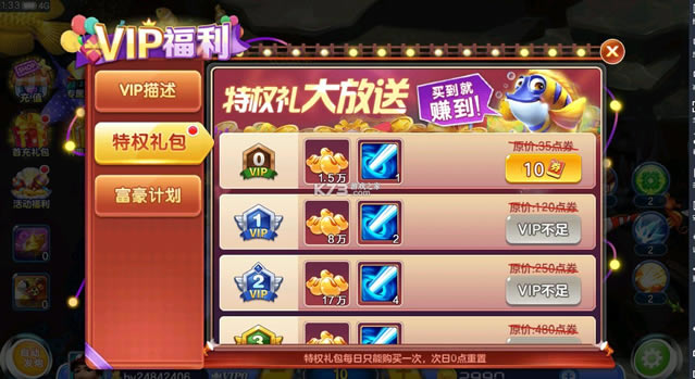 8、多人在线畅玩,秀炫酷捕鱼特技,领丰厚大奖礼包,更可以挑战全国捕鱼达人走上人生巅峰!