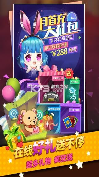 无需氪金,每天累计在线时间,就能获得大量金豆及银币,更有机会获得商城的精美时装及特效炫酷的道具