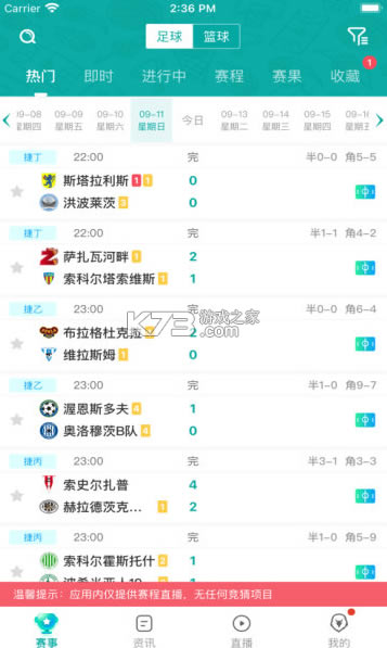 7.贴心的游戏比分会直播。比分改写后,会第一时间告诉自己喜欢的球队,关注比赛比分。
