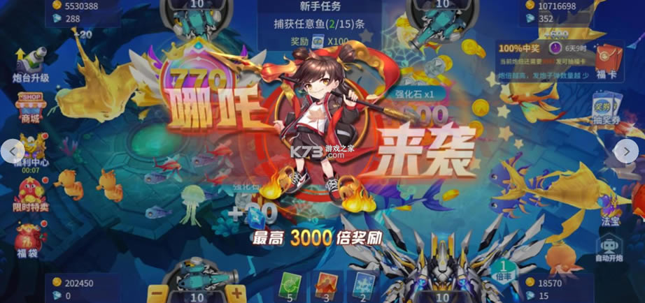 3、惊喜奖励模式上线, 捕获boss鱼即可获得对应奖励;