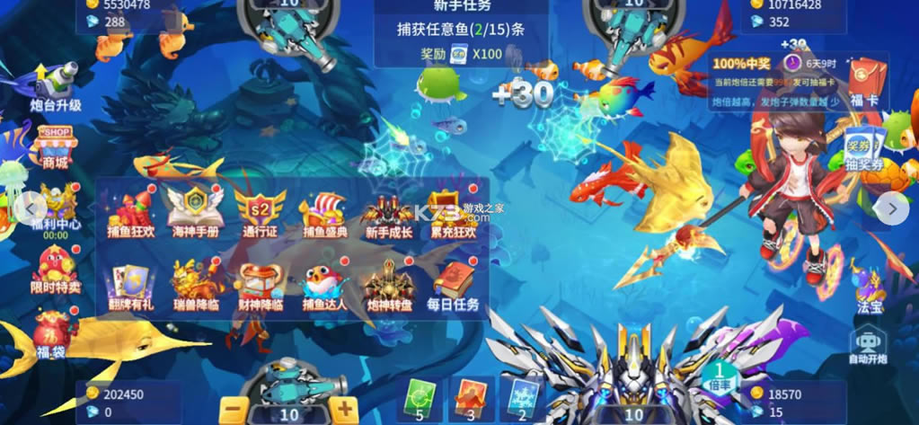 2、全新鱼种,华丽鱼阵,超级BOSS随时出现,捕捉成功可获超高奖励