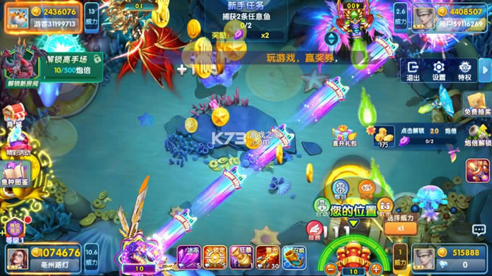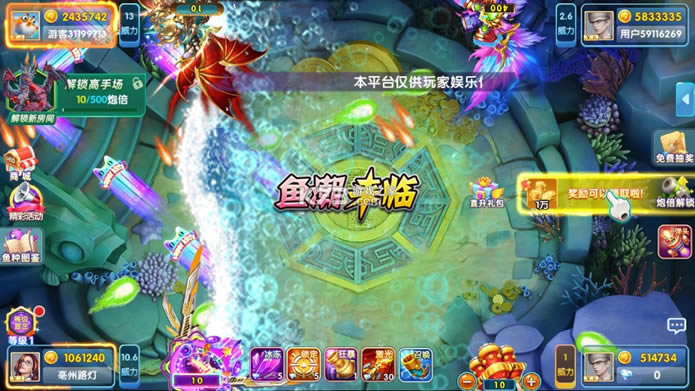 还原经典街机的捕鱼玩法,轻松直升50万炮,一炮亿金爽翻天!