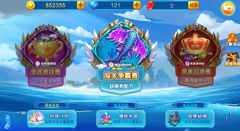 五大捕鱼情景,绚丽多彩画面、精致炮台达到挑剔的你。