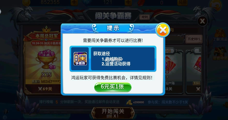 电玩城捕鱼完美移植,给你原汁原味的街机千炮捕鱼体验。24小时随时服务,1000炮爆爽体验,更高倍率!《梦幻捕鱼闯关争霸版本》可以加入捕鱼闯关模式了,能够选择闯关进行体验了。每天都可以开始新的闯关,可以加入闯关3次,然后也需要门票才可以开启新的模式了,更多闯关争霸福利可以领取到位了。