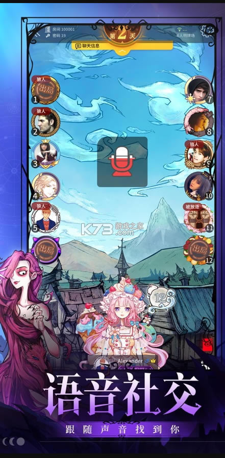 拥有狼人杀R相关商标,还原面杀玩法,带来沉浸式心跳体验!全网首发炼金魔女、狼鸦之爪、纯白之女、血月使徒、咒狐等角色,挖掘你的巅峰演技!人气主播、偶像明星每晚组局, 随时遇见你的心动~