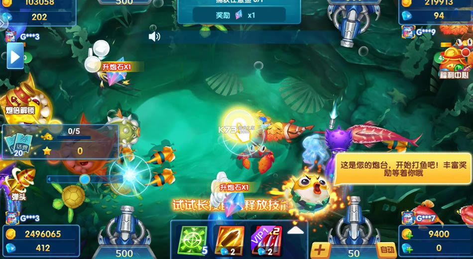 多种对战模式,邀请好友组队开黑对战,抢夺鱼群,赚取金币更多的一方获得胜利;