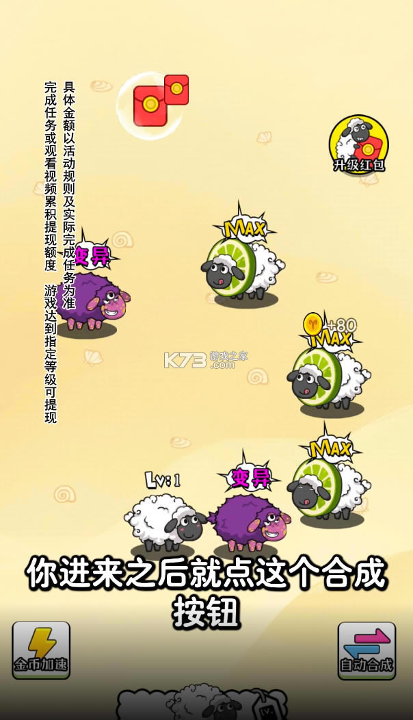 赚钱更容易。内置了很多好玩的小游戏。为了获得更多的羊毛,你需要培养很多高级羊。轻松开发游戏,合成高级绵羊。