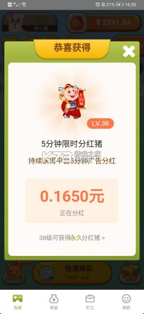 1、简单的合成游戏,卡通的游戏画风,Q萌的小猪仔逐渐的成长,让人收获喜悦