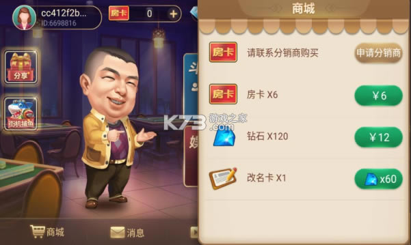 7、每天分享游戏领取福利,活动中心可以领取最新任务,商城可以购买房卡、钻石