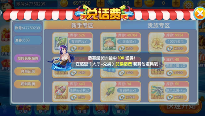 捕鱼活动房玩法可以获取大量的渔券