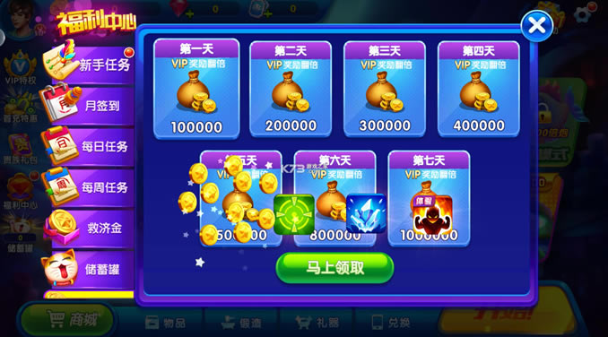 登录就送海量金币,新手七日豪礼最高十倍,每天还有各种任务等你来完成!
