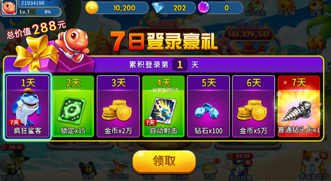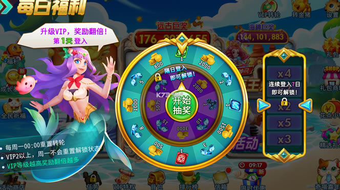 每日签到领奖励,完成捕鱼任务奖更多!