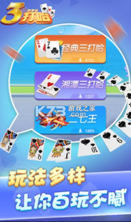 《三打哈》是一款纸牌游戏,玩家在游戏中可以邀请自己的好友来一起游玩,游戏中还有各种不同的模式玩法,总有你喜欢的的那一款。每天上线福利多多,喜欢的小伙伴快来下载体验吧!