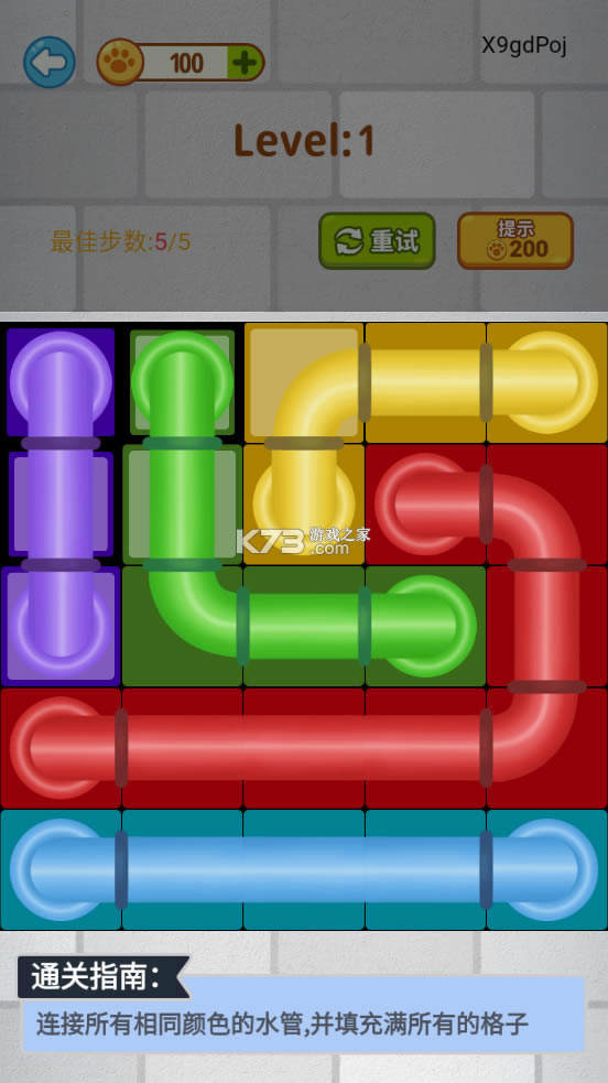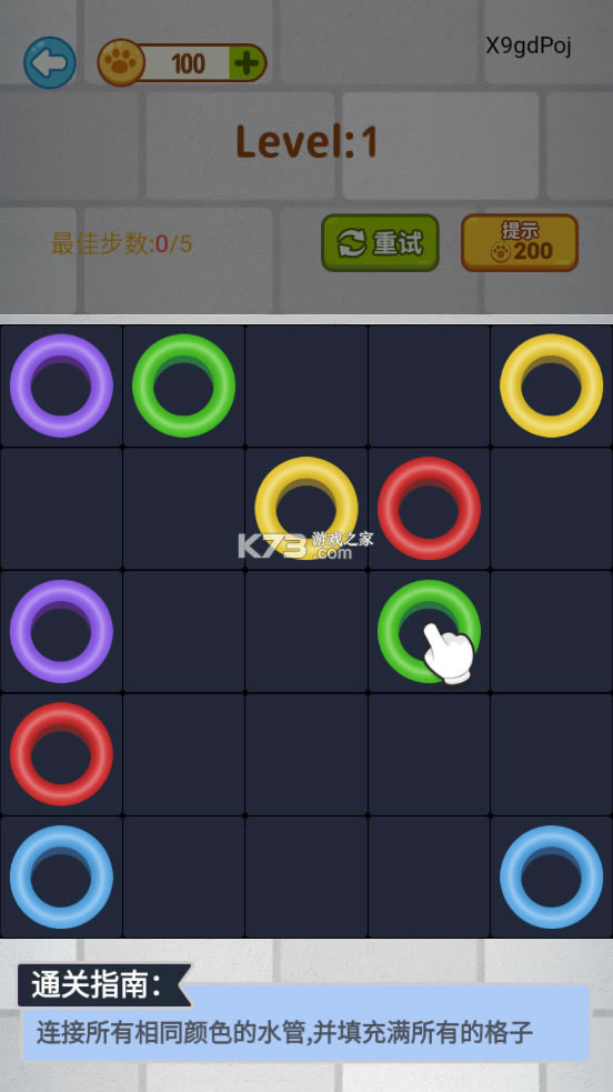 《画线来了》是一款利用画线去闯关的益智类小游戏,操作简单,但挑战性十足。玩家需要根据图上所出现的圆圈的位置,把相同颜色的两个圆圈连接起来形成一条管道,直至所有圆圈连接完毕且画面中不留空格,即为游戏胜利。