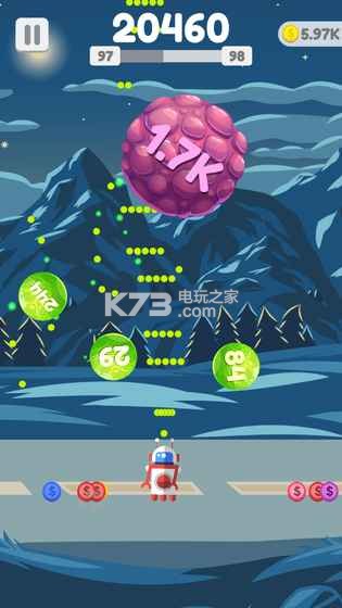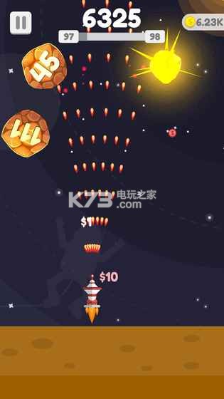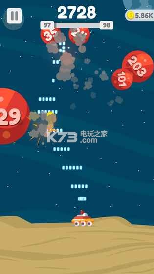 星球大爆炸这款趣味弹幕射击类反应游戏,玩家要做的就是控制飞行器不断射击球球,这些带有数字的球球就是你的目标,需要不停的消灭这些数字,不断减小直至消失,要注意的就是小球会在一段时间后下落,一定要注意躲避走位!
