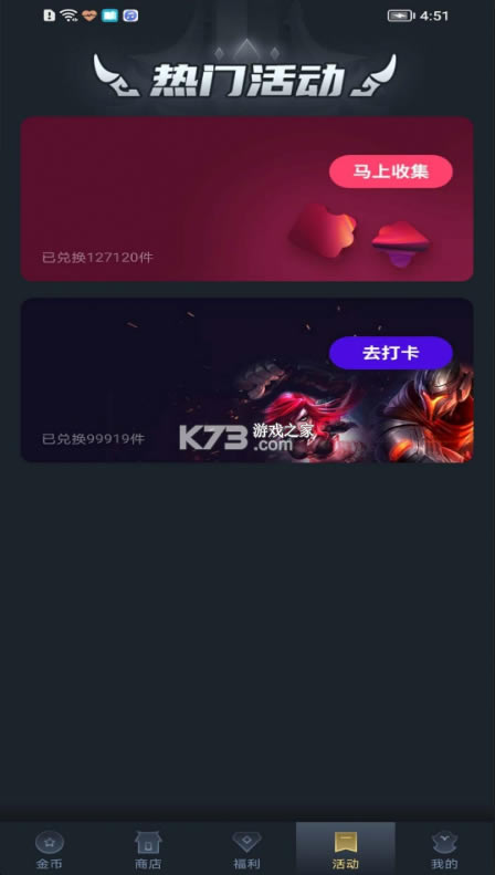 各种福利都有,汇聚的是各种不同的游戏内容,这里的游戏内容都是最新的,领取皮肤方便容易,不管是哪一个游戏上面的皮肤这里都可以帮你去找到,做几个任务看看积攒碎片