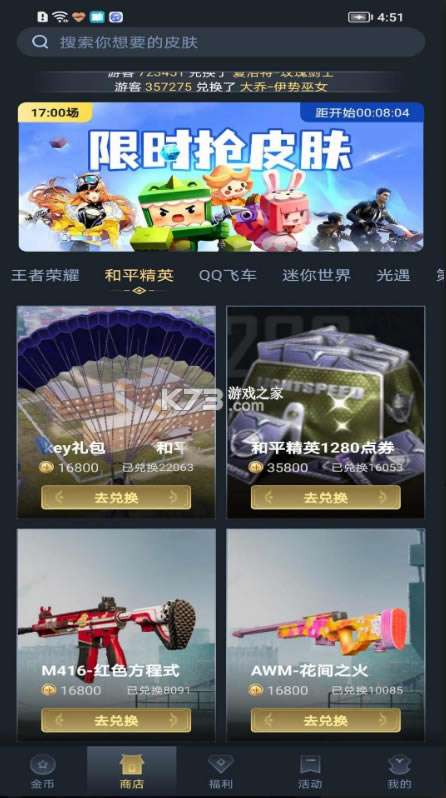 3、趣抢皮肤app上线了,这是一款福利平台,玩家上线可以轻松领取各种福利,真的能兑换各种史诗皮肤。