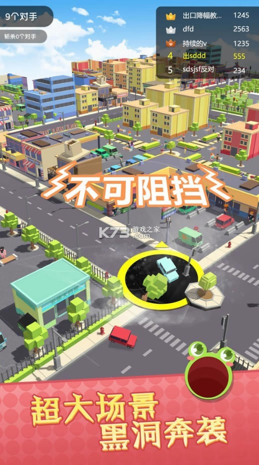 黑洞大吞噬是集消除和竞技元素于一体的休闲益智游戏。游戏开始后,你会控制一个初级黑洞和其他黑洞一起出现在一个小镇上,黑洞之间的较量即将到来。黑洞大吞噬游戏中为了在竞争中主动出击,你需要通过滑动屏幕控制黑洞移动到吞噬的物体下方。树木、路标、建筑……所有出现在场景中的物体都可以被吞噬,包括其他黑洞。如果其他黑洞大于自己也可以吞噬你。随着吞噬物体的增加,黑洞半径会逐渐增大,吞噬能力也会增强,想想都很刺激有木有,赶紧来下载吧!
