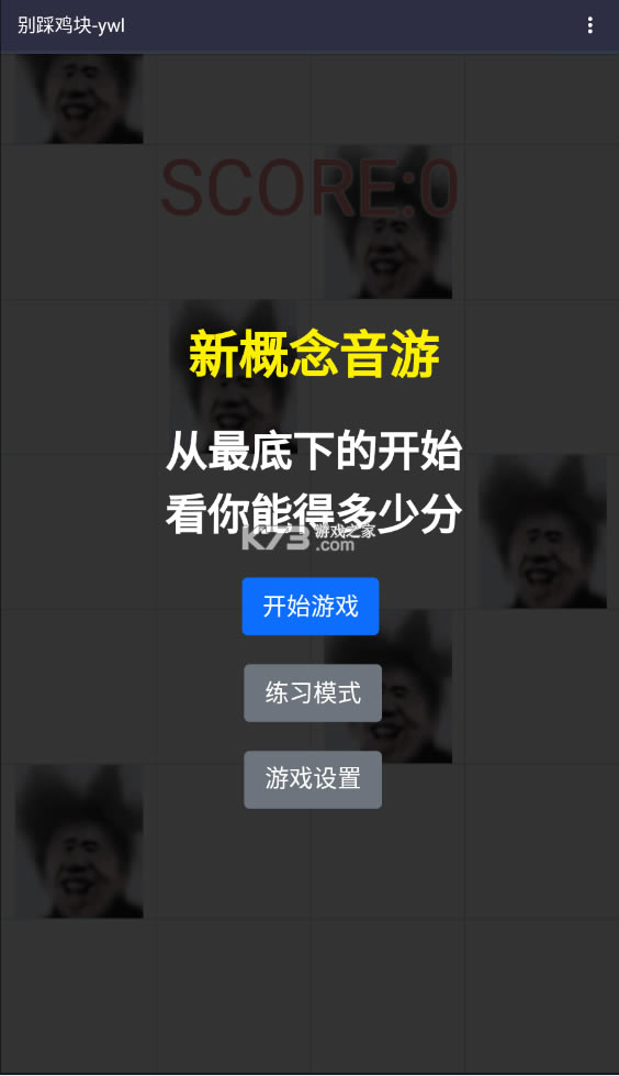 想必大家都有玩过风靡世界的别踩白块儿游戏吧?此次小编也带来这样一款恶搞休闲益智游戏:别踩鸡块,这是由网友自制的娱乐新概念的音游,其采用鬼畜的搞笑图片和魔性的背景音乐,使得玩家能很快乐的进行游玩。同时如果你对坤坤的恶搞头像看腻后,还能自己从相册当中选择你想加入的搞笑图片,为你带来不一样的游戏体验。另外,别踩鸡块还加入了全新的三大模式,普通模式、无尽模式、练习模式,每个模式都有其独特的游戏玩法和内容,为了就是让你一整天游戏下来,都不会烦腻,如果你是工作一整天比较疲惫就不妨试试这款游戏!