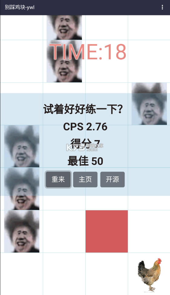 别踩鸡块游戏是一款非常简单有趣的休闲游戏。相信喜欢坤坤的玩家一定很喜欢这个游戏。在这个游戏中音效也非常完美,点击成功就会换一张图,每次玩起来都感觉十分开心,简简单单,喜欢的玩家可以下载别踩鸡块2022免费版体验吧。
