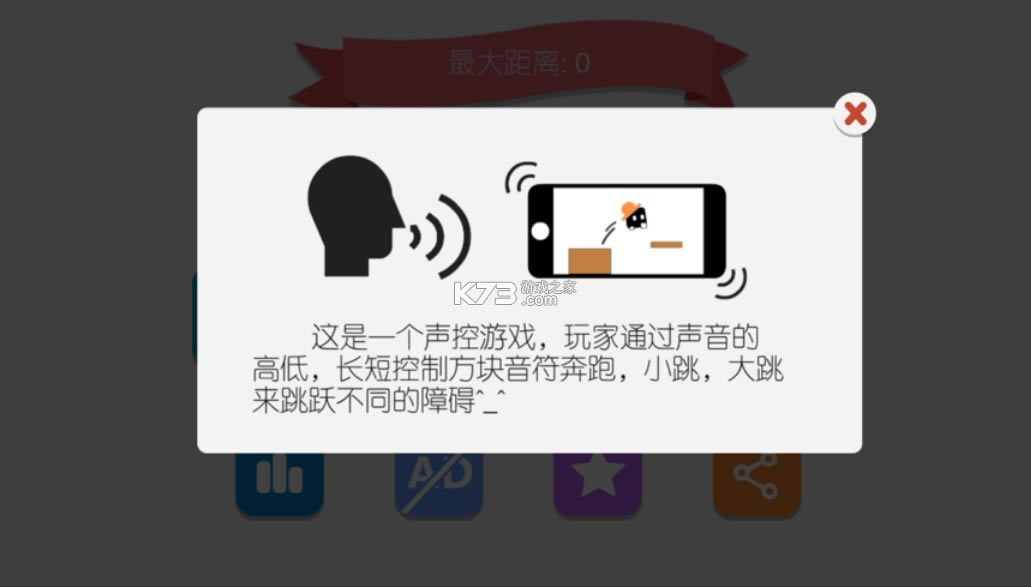 通过控制声音来控制角色所有的动作,每种关卡的设置都不一样,声控的方式也会发生改变