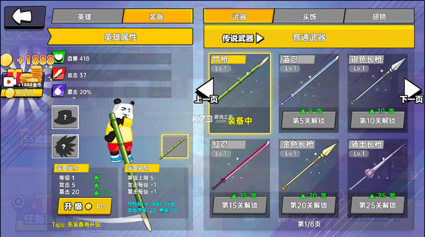 4、游戏中将有十几个英雄和不同的武器装备,玩家可以快速收集他们,这样他们就可以组建自己的军队