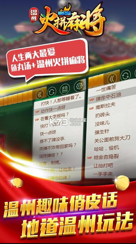 《温州火拼麻将》全新系统上线,自由畅玩还有特色的语音方言,语音交流玩游戏的同时还能交友,感兴趣的玩法这里都有,选择各种不同的场次,随时开局特别轻松,温州火拼麻将,拥有最独特的游戏玩法,快速赢豪礼超级丰富。