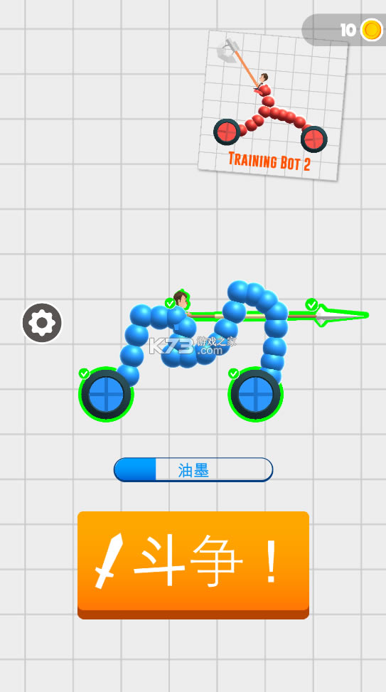 draw joust是一款非常好玩有趣的游戏,在这里玩家进行你的操控,首先就是绘制出你的湛河,战车使用起来,不断的进行战斗,战车会有自己的武器,首先你要知道这款游戏的核心是战车上面的人,只要是人被杀掉,你就是游戏胜利,你的战车可以绘制出来保护你的人类,但是那么你的进攻性就基本上没有了,而且防御只能够抗住两次攻击,所以绘制出来一个好进攻的车辆进行对抗,完成你的任务吧。