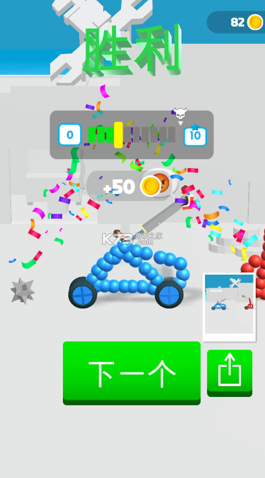 4、操作起来贼6,玩起来贼酷炫,控制各种奇形怪状的小车,收集更多弓箭武器;