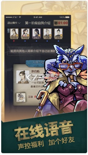 简单易上手的操作界面,多样化的剧本玩法,好玩的角色特殊技能。比“狼人杀”更简单,比“三国杀”更有趣。