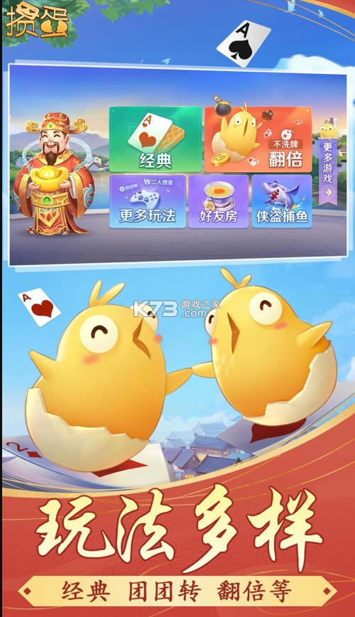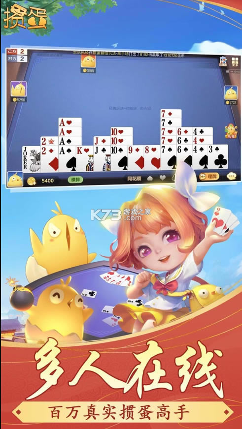 多乐鸡蛋包括联网和单机模式,融合了江苏、安徽、淮安等地鸡蛋的民间特色,操作界面简洁清新,高品质动画效果,人性化提醒,独特的选卡,卡片管理功能,同花顺一键选择,完美流畅的卡片提示。
