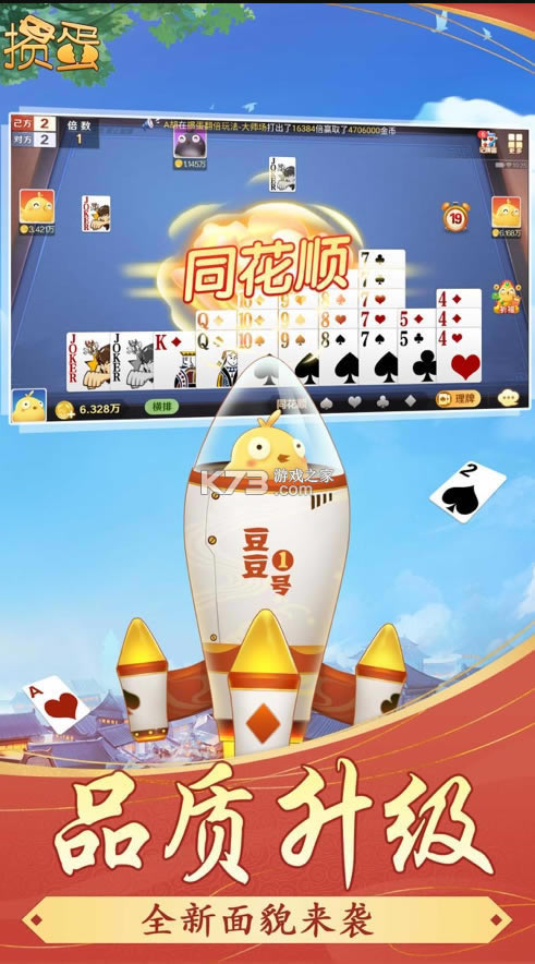 掼蛋”数万玩家的聚集地。正宗淮安“掼蛋”玩法,精美的游戏画面,炫酷的出牌效果!