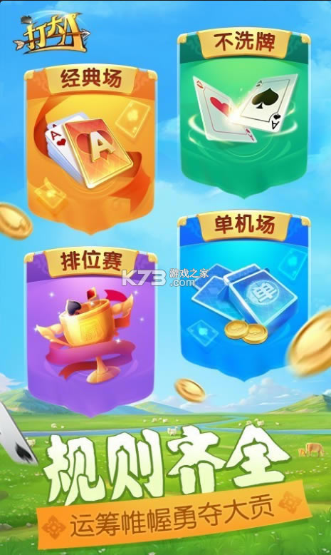 《打大A》规则上更加的齐全,人人都争做大A,运筹帷幄体验超豪华的感觉,在这里开宝箱赢话费,百款棋牌游戏尽在其中,纯正的内蒙游戏,经典场、不洗牌、排位赛和单机场,模式众多欢乐不断。