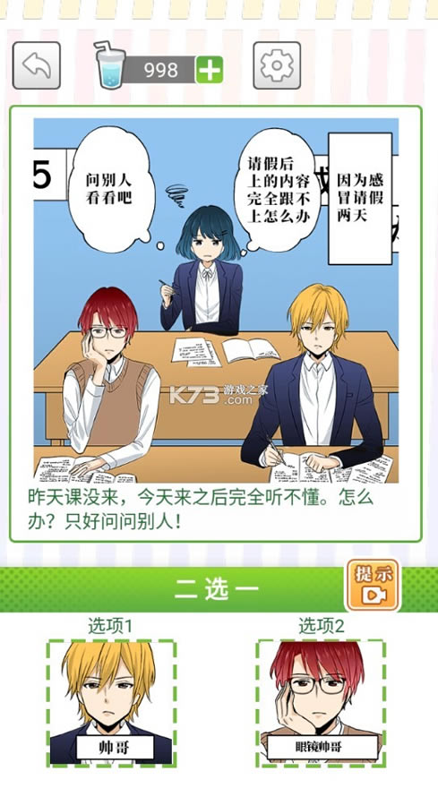 恋爱中的二选一,每个选项将决定你的恋爱结果。